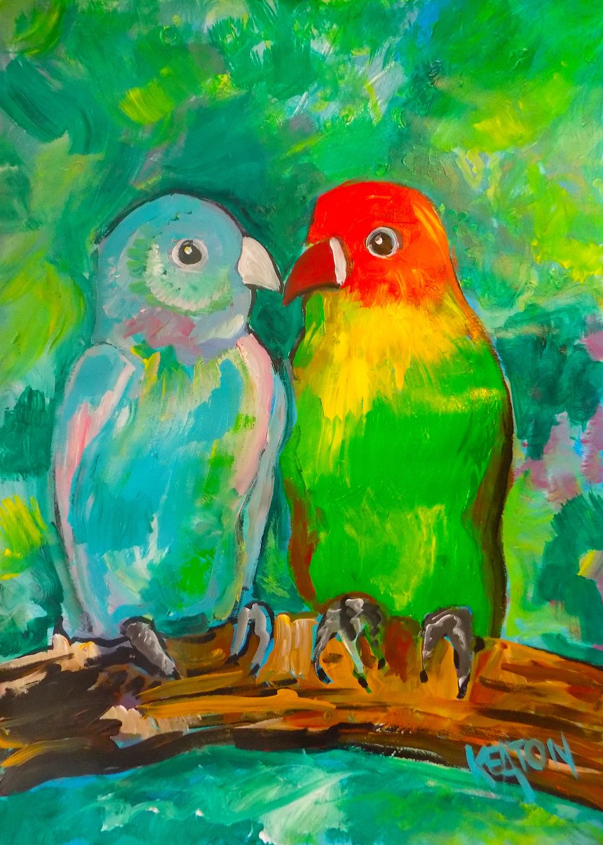 This delightful Study of a Parrot and two Cockatiels won the First Place Painting Category in 2025's Veterans Art Competition in Baltimore.