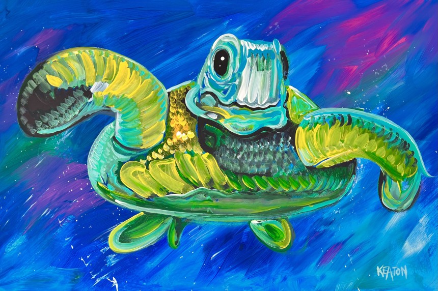 A wonderfully colored Sea Turtle makes his way through the ocean paradise