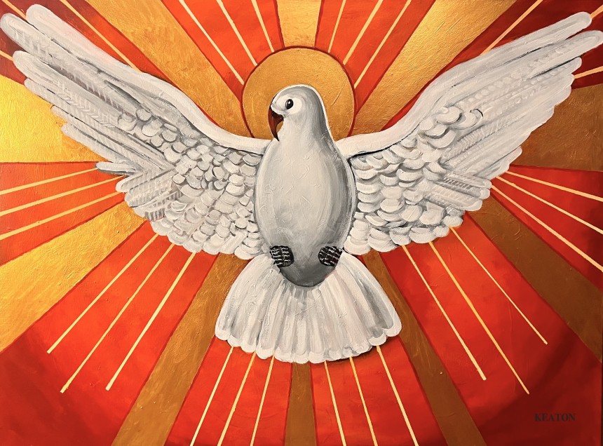 As part of a mural project at Saint Patrick's Church in Havre de Grace, this painting depicts a dove, the representation of the Holy Spirit...