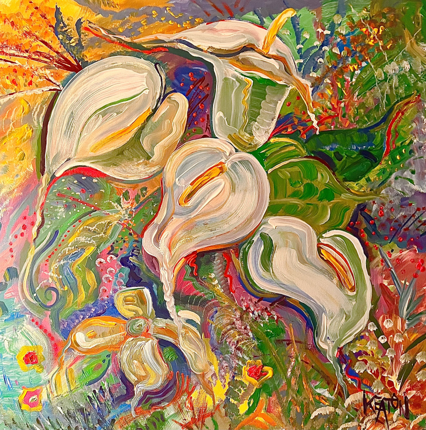 An expressionistic interpretation of a bouquet of calla Lillies